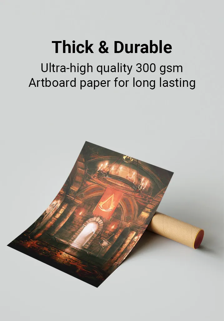 This Assassin's Creed poster features high-resolution artwork printed on 300gsm thick, glossy paper to ensure vibrant colors & long-lasting durability.