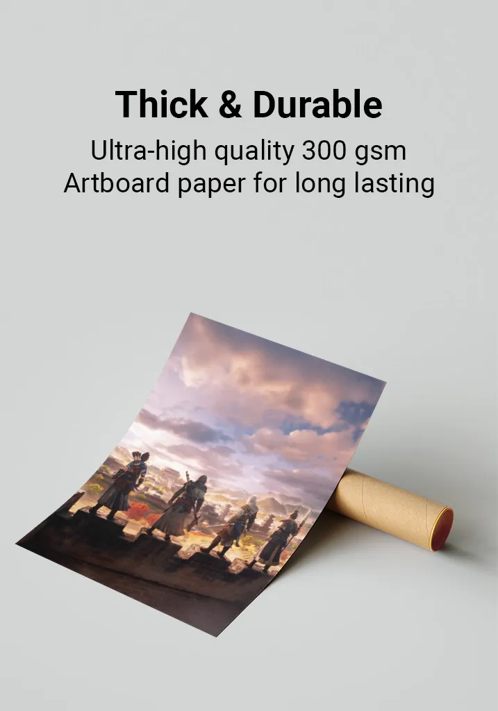 This Assassin's Creed poster features high-resolution artwork printed on 300gsm thick, glossy paper to ensure vibrant colors & long-lasting durability.
