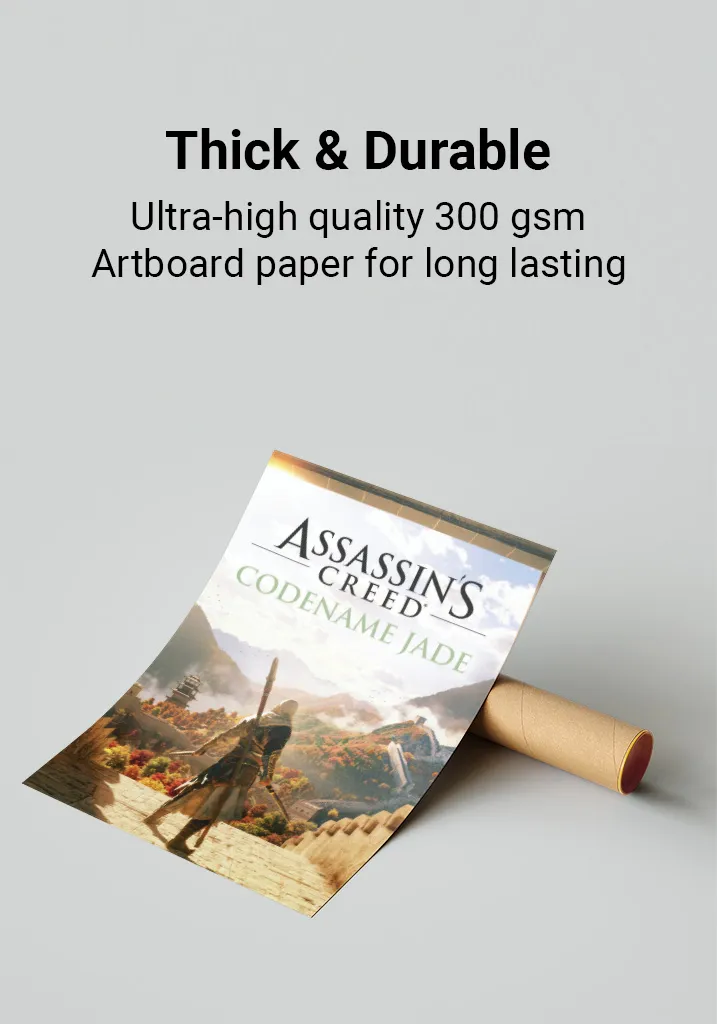 Premium Quality: Assassin's Creed posters are printed on ultra-thick 300gsm, glossy art-board paper for a premium feel and lasting durability. The perfect addition to any gaming room, bedroom, or office. Available in multiple sizes to fit your space.