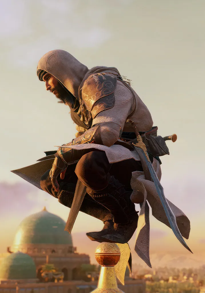 Uncover hidden truths with Basim in this intriguing poster set in the golden age of Baghdad. Shop Assassins Creed Mirage Cunning Basim Hidden Truth Poster & level up your space.