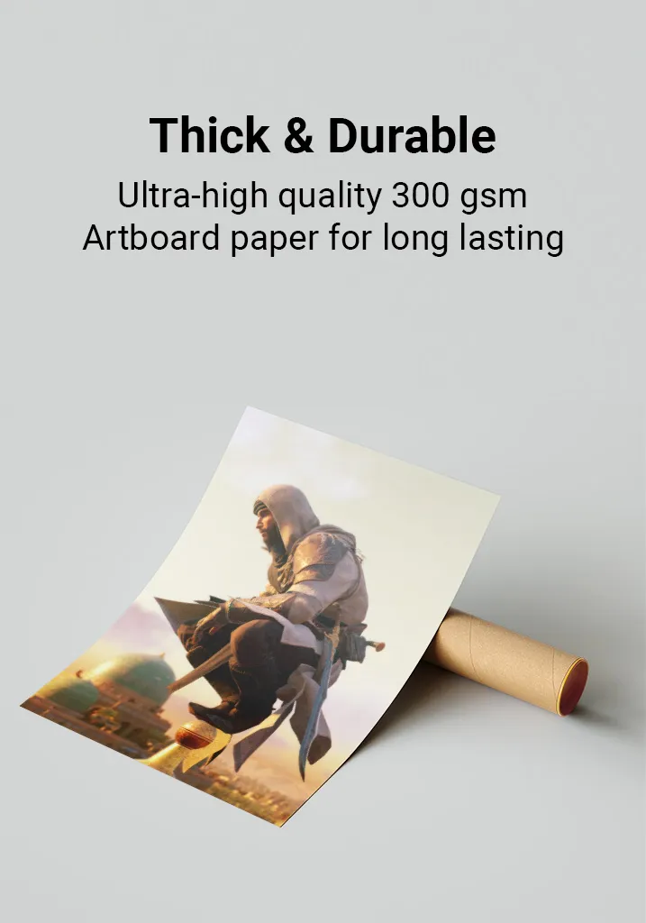 Premium Quality: Assassin's Creed posters are printed on ultra-thick 300gsm, glossy art-board paper for a premium feel and lasting durability. The perfect addition to any gaming room, bedroom, or office. Available in multiple sizes to fit your space.