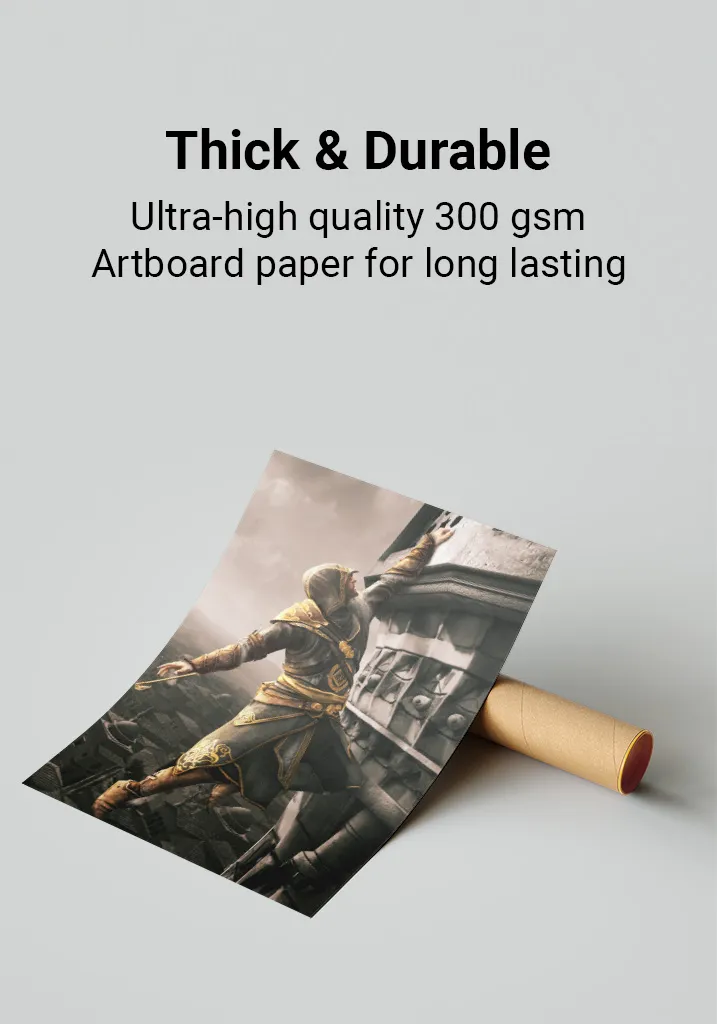 Premium Quality: Assassin's Creed posters are printed on ultra-thick 300gsm, glossy art-board paper for a premium feel and lasting durability. The perfect addition to any gaming room, bedroom, or office. Available in multiple sizes to fit your space.