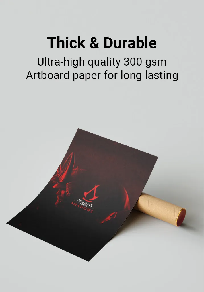 This Assassin's Creed poster features high-resolution artwork printed on 300gsm thick, glossy paper to ensure vibrant colors & long-lasting durability.