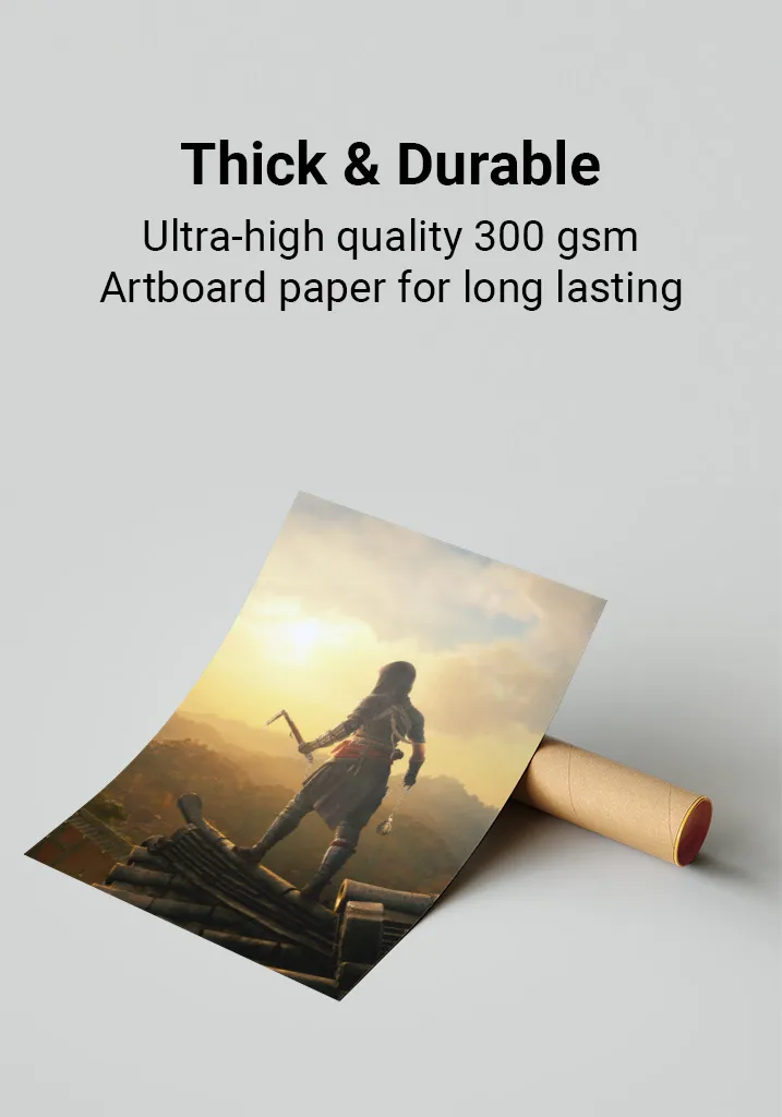 This Assassin's Creed poster features high-resolution artwork printed on 300gsm thick, glossy paper to ensure vibrant colors & long-lasting durability.
