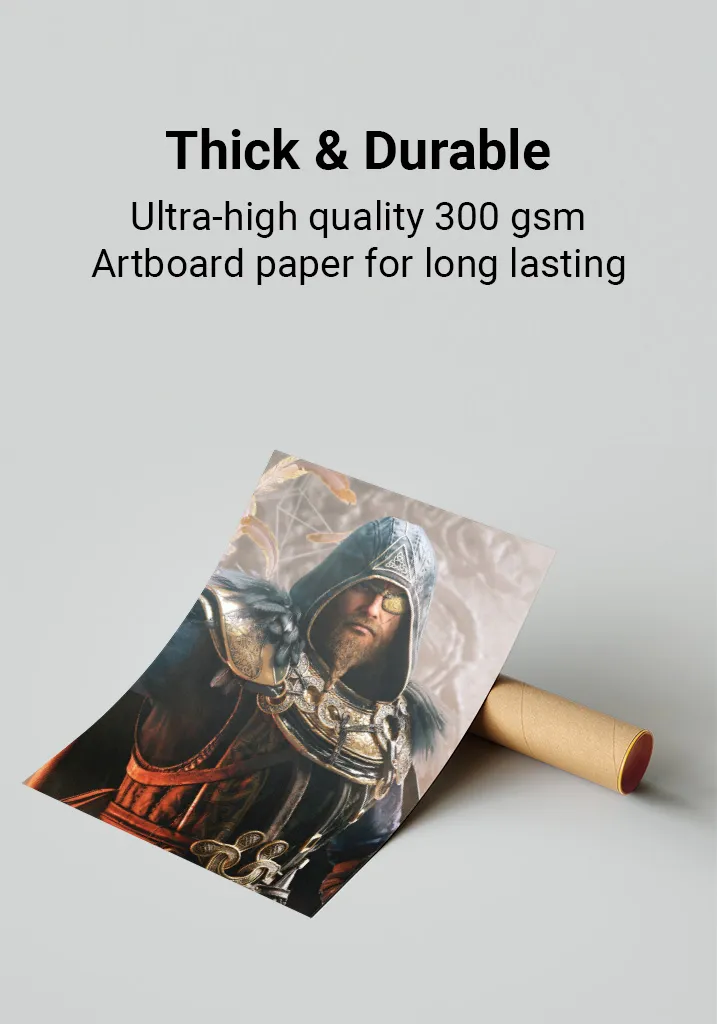 Premium Quality: Assassin's Creed posters are printed on ultra-thick 300gsm, glossy art-board paper for a premium feel and lasting durability. The perfect addition to any gaming room, bedroom, or office. Available in multiple sizes to fit your space.