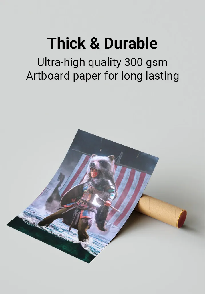 This poster features high-resolution artwork printed on 300gsm thick, glossy paper to ensure vibrant colors & long-lasting durability.