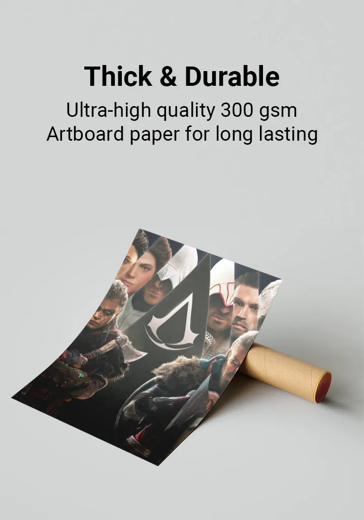 Premium Quality: Assassin's Creed posters are printed on ultra-thick 300gsm, glossy art-board paper for a premium feel and lasting durability. The perfect addition to any gaming room, bedroom, or office. Available in multiple sizes to fit your space.
