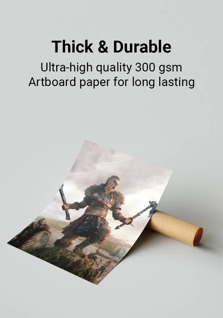 This poster features high-resolution artwork printed on 300gsm thick, glossy paper to ensure vibrant colors & long-lasting durability.