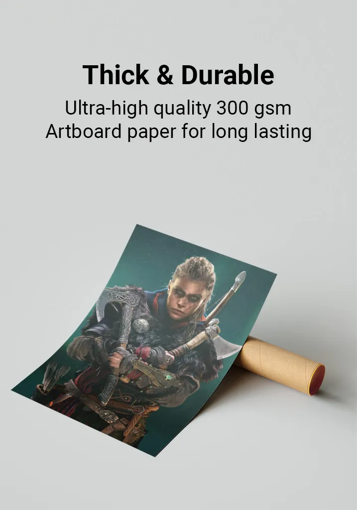 This Assassin's Creed poster features high-resolution artwork printed on 300gsm thick, glossy paper to ensure vibrant colors & long-lasting durability.
