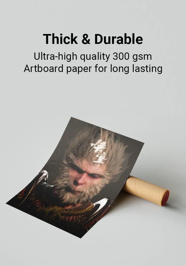 Premium Quality: Black Myth Wukong posters are printed on ultra-thick 300gsm, glossy art-board paper for a premium feel and lasting durability. The perfect addition to any gaming room, bedroom, or office. Available in multiple sizes to fit your space.