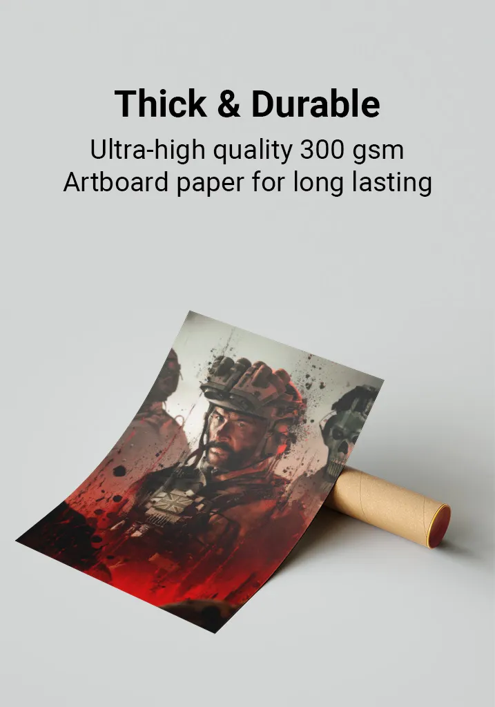 Premium Quality: Call of Duty posters are printed on ultra-thick 300gsm, glossy art-board paper for a premium feel and lasting durability. The perfect addition to any gaming room, bedroom, or office. Available in multiple sizes to fit your space.