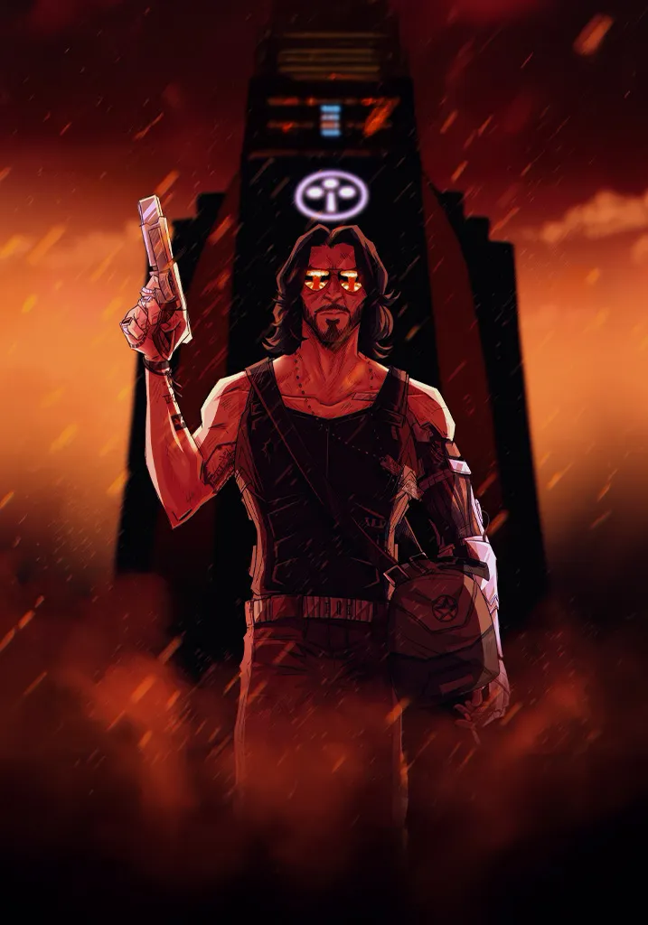 Celebrate Keanu Reeves as Johnny Silverhand with this character art poster from Cyberpunk 2077. A must-have for fans of both the actor and the game. Shop Cyberpunk 2077 Johnny Silverhand Keanu Reeves Character Poster & level up your space.