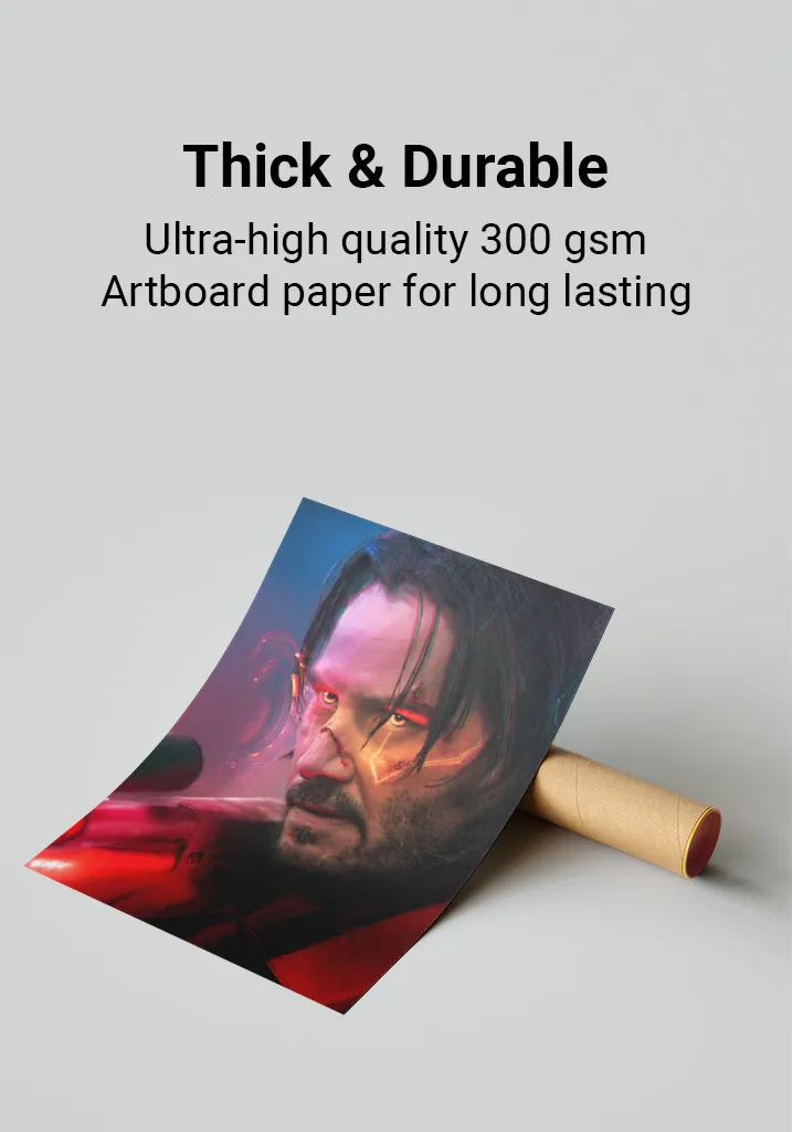 Premium Quality: Cyberpunk 2077 posters are printed on ultra-thick 300gsm, glossy art-board paper for a premium feel and lasting durability. The perfect addition to any gaming room, bedroom, or office. Available in multiple sizes to fit your space.