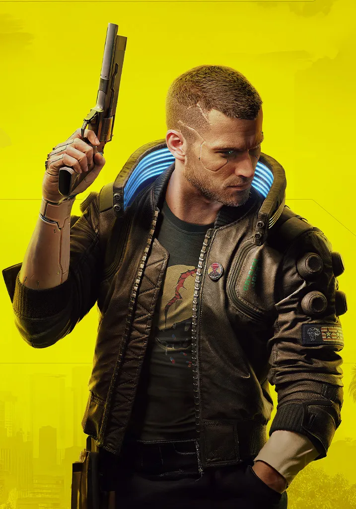 Display the rugged Male V in this mercenary hero portrait poster from Cyberpunk 2077. Perfect for fans who chose the male protagonist path. Shop Cyberpunk 2077 Male V Mercenary Hero Portrait Poster & level up your space.