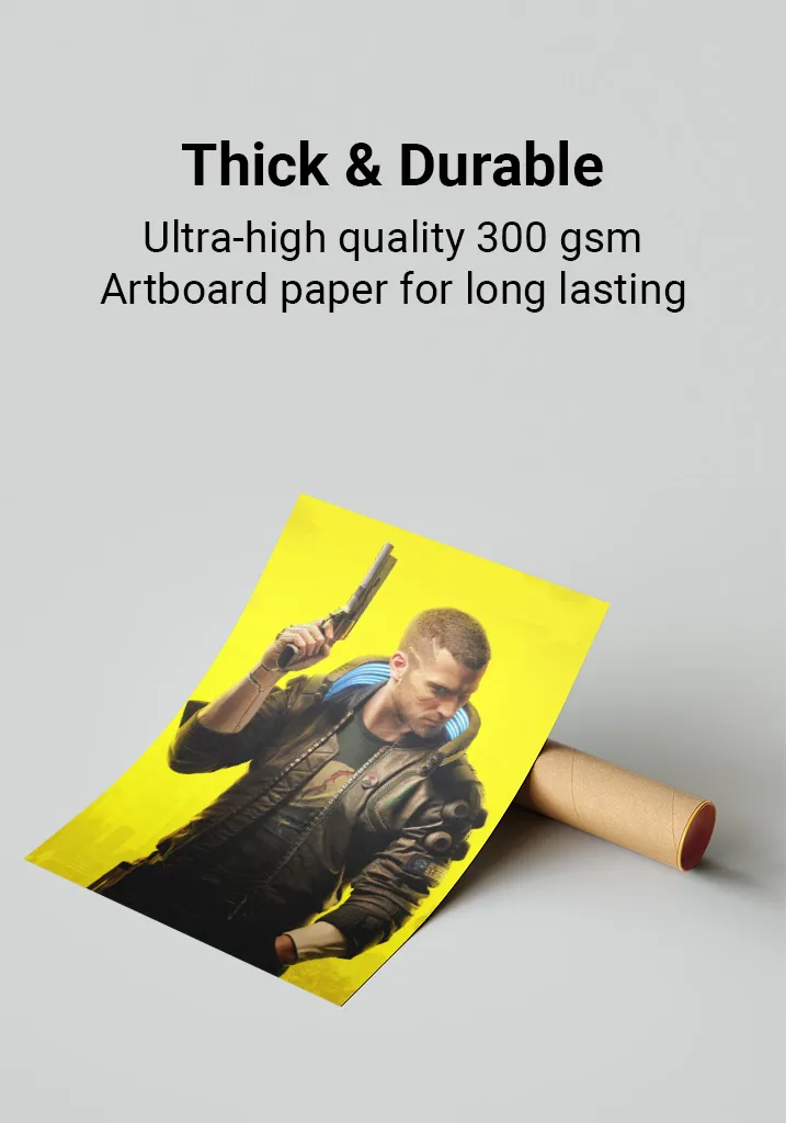 Premium Quality: Cyberpunk 2077 posters are printed on ultra-thick 300gsm, glossy art-board paper for a premium feel and lasting durability. The perfect addition to any gaming room, bedroom, or office. Available in multiple sizes to fit your space.