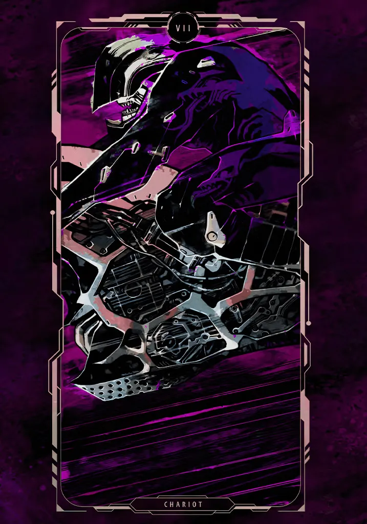 Transform Your Space: Elevate your gaming setup with this exclusive Cyberpunk 2077 The Chariot Tarot Card Art Poster! Designed for die-hard fans, this stunning print brings the heat of the intense gaming right to your walls.