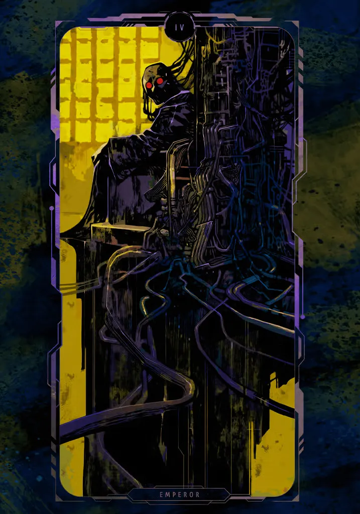 Command authority with The Emperor tarot card art from Cyberpunk 2077. Perfect for fans of the game’s corporate power dynamics. Shop Cyberpunk 2077 The Emperor Tarot Card Art Poster & level up your space.
