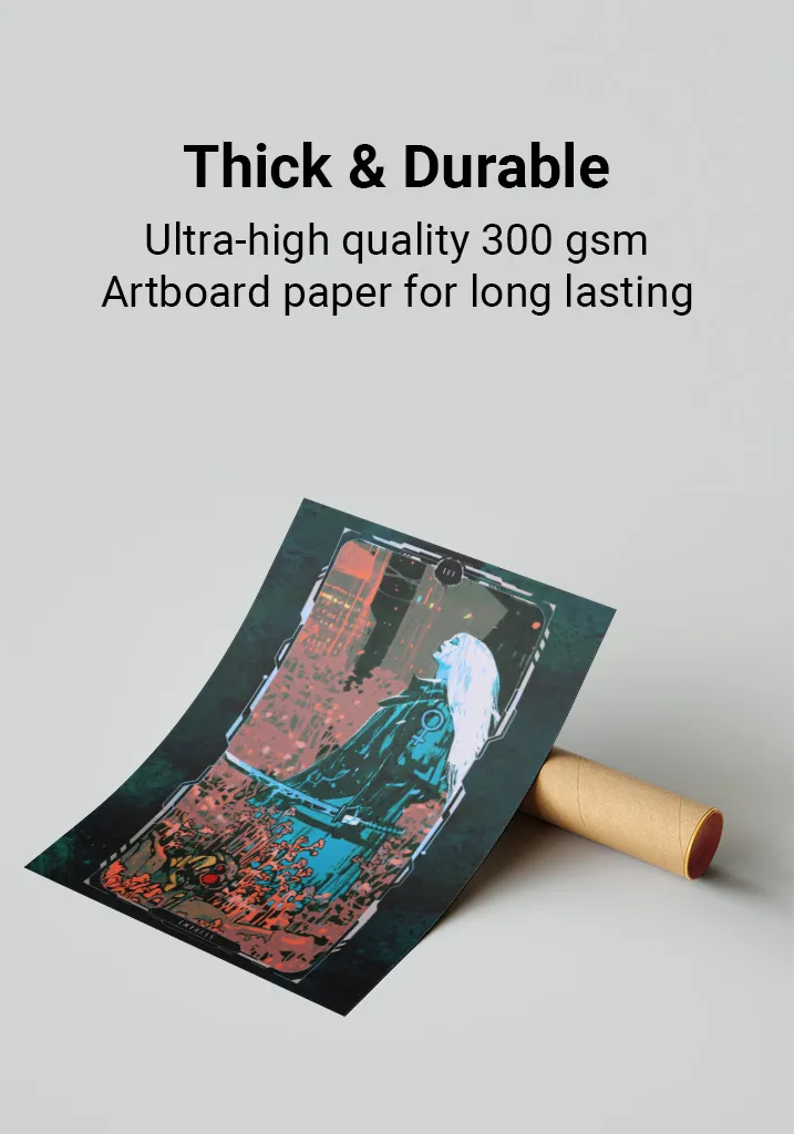 This Cyberpunk 2077 poster features high-resolution artwork printed on 300gsm thick, glossy paper to ensure vibrant colors & long-lasting durability.