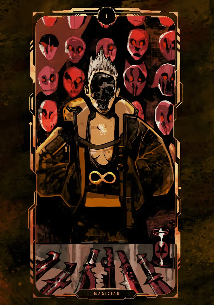 Harness your power with The Magician tarot art from Cyberpunk 2077. Ideal for fans of mystical cyberpunk imagery. Shop Cyberpunk 2077 The Magician Tarot Art Poster & level up your space.