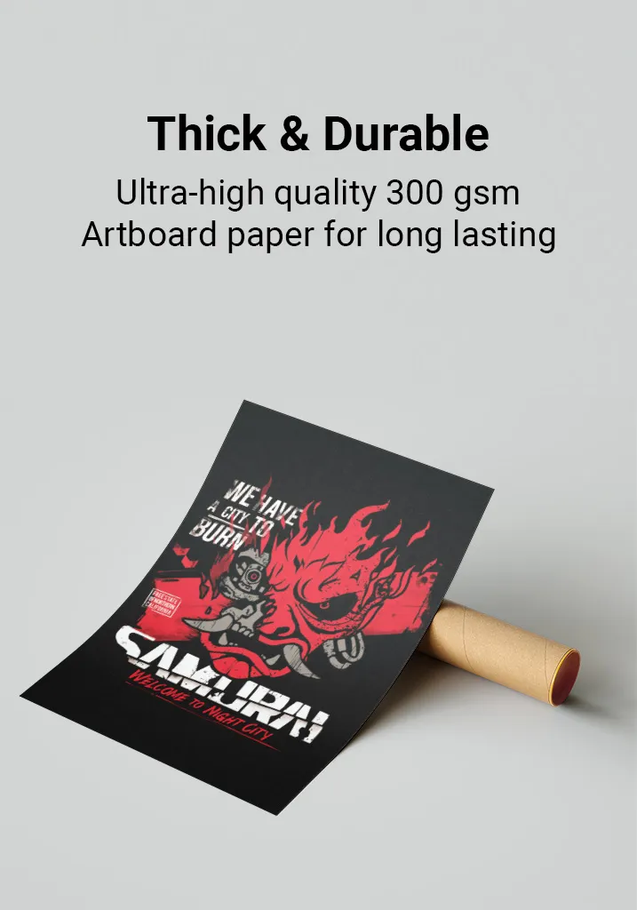 Premium Quality: Cyberpunk 2077 posters are printed on ultra-thick 300gsm, glossy art-board paper for a premium feel and lasting durability. The perfect addition to any gaming room, bedroom, or office. Available in multiple sizes to fit your space.