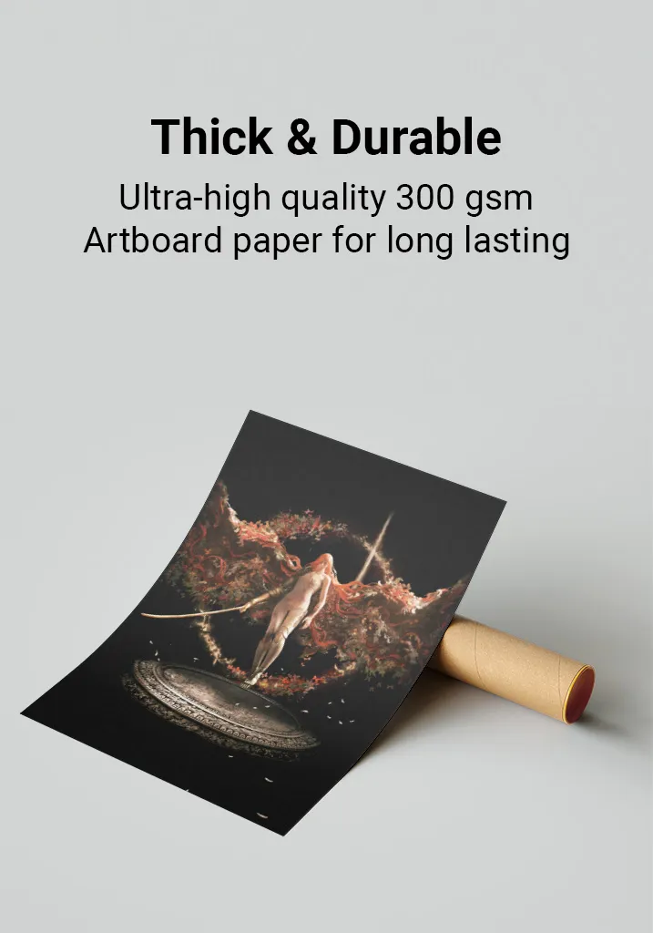 This poster features high-resolution artwork printed on 300gsm thick, glossy paper to ensure vibrant colors & long-lasting durability.