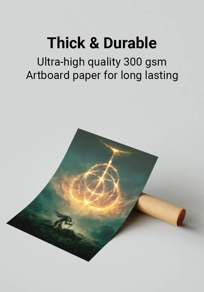 This Elden Ring poster features high-resolution artwork printed on 300gsm thick, glossy paper to ensure vibrant colors & long-lasting durability.