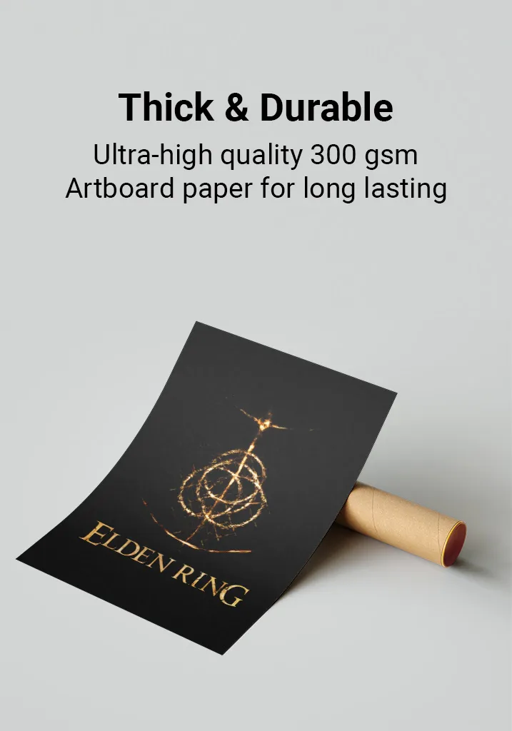 This Elden Ring poster features high-resolution artwork printed on 300gsm thick, glossy paper to ensure vibrant colors & long-lasting durability.