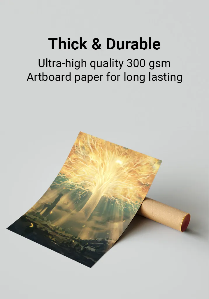 This Elden Ring poster features high-resolution artwork printed on 300gsm thick, glossy paper to ensure vibrant colors & long-lasting durability.