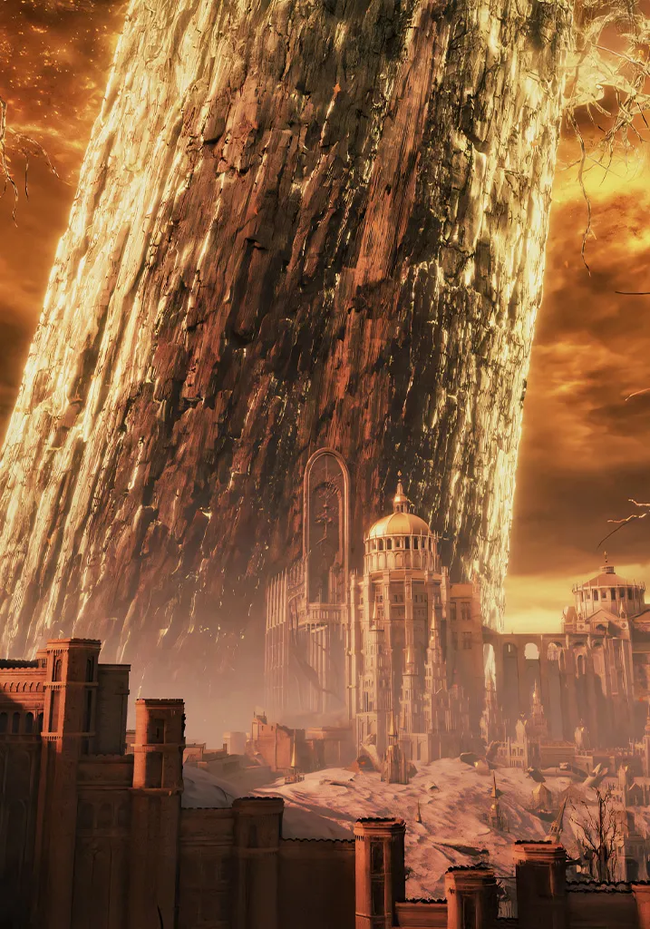 Discover the majestic vista of Leyndell, the Royal Capital, in this breathtaking Elden Ring artwork featuring the golden city’s architectural grandeur.Shop Elden Ring Leyndell the Royal Capital View & level up your space.