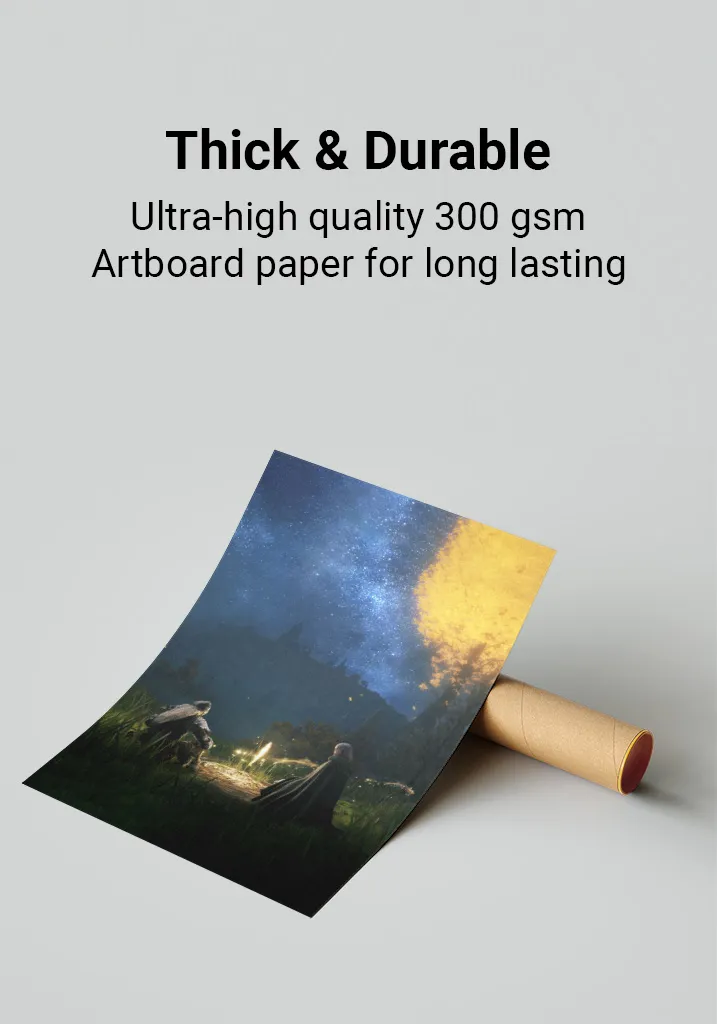This Elden Ring poster features high-resolution artwork printed on 300gsm thick, glossy paper to ensure vibrant colors & long-lasting durability.
