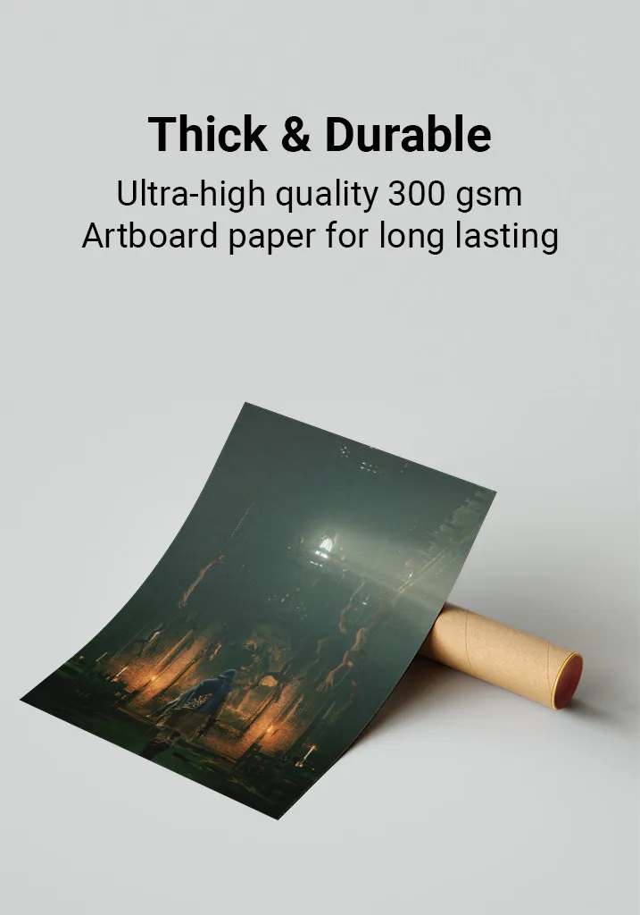 This Elden Ring poster features high-resolution artwork printed on 300gsm thick, glossy paper to ensure vibrant colors & long-lasting durability.