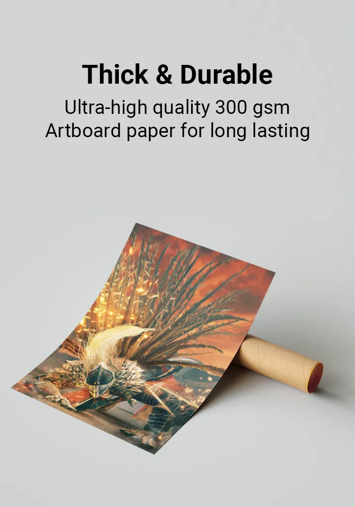 This poster features high-resolution artwork printed on 300gsm thick, glossy paper to ensure vibrant colors & long-lasting durability.