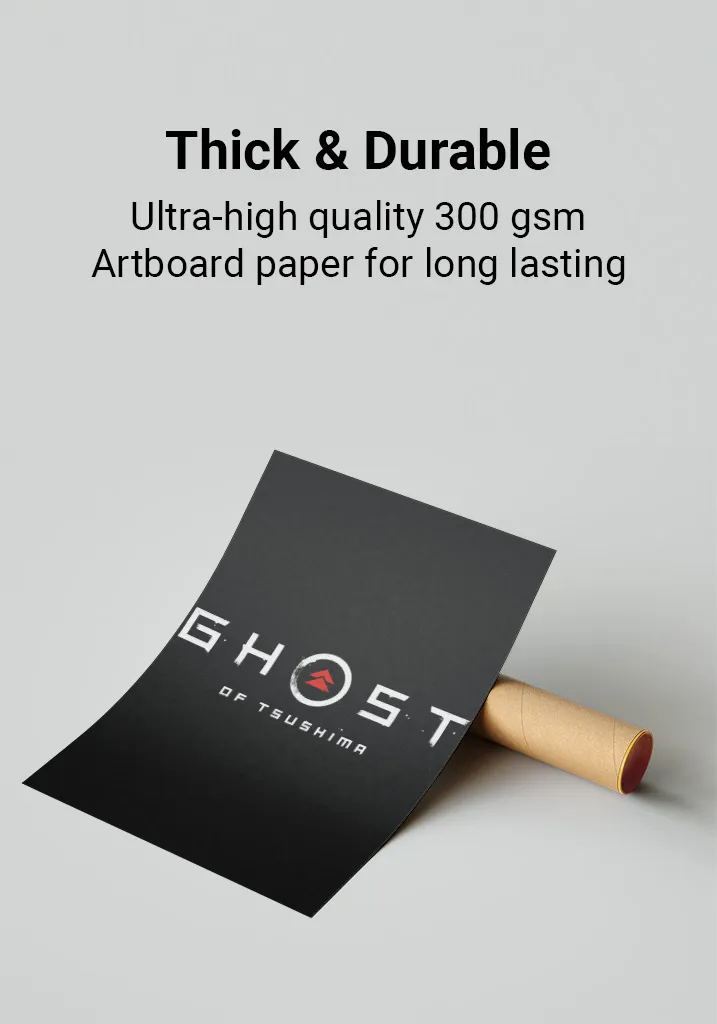 Premium Quality: Ghost of Tsushima posters are printed on ultra-thick 300gsm, glossy art-board paper for a premium feel and lasting durability. The perfect addition to any gaming room, bedroom, or office. Available in multiple sizes to fit your space.