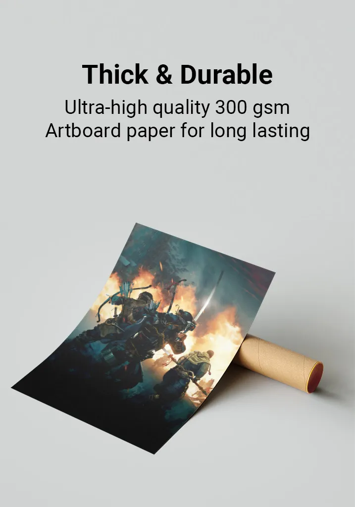 Premium Quality: Ghost of Tsushima posters are printed on ultra-thick 300gsm, glossy art-board paper for a premium feel and lasting durability. The perfect addition to any gaming room, bedroom, or office. Available in multiple sizes to fit your space.