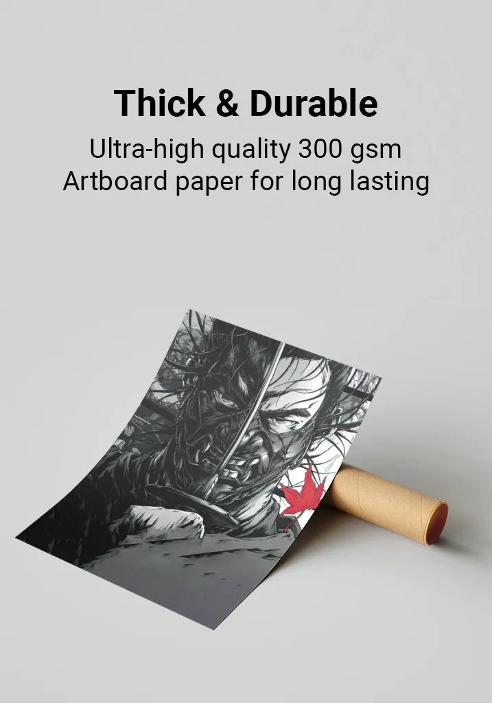 Premium Quality: Ghost of Tsushima posters are printed on ultra-thick 300gsm, glossy art-board paper for a premium feel and lasting durability. The perfect addition to any gaming room, bedroom, or office. Available in multiple sizes to fit your space.