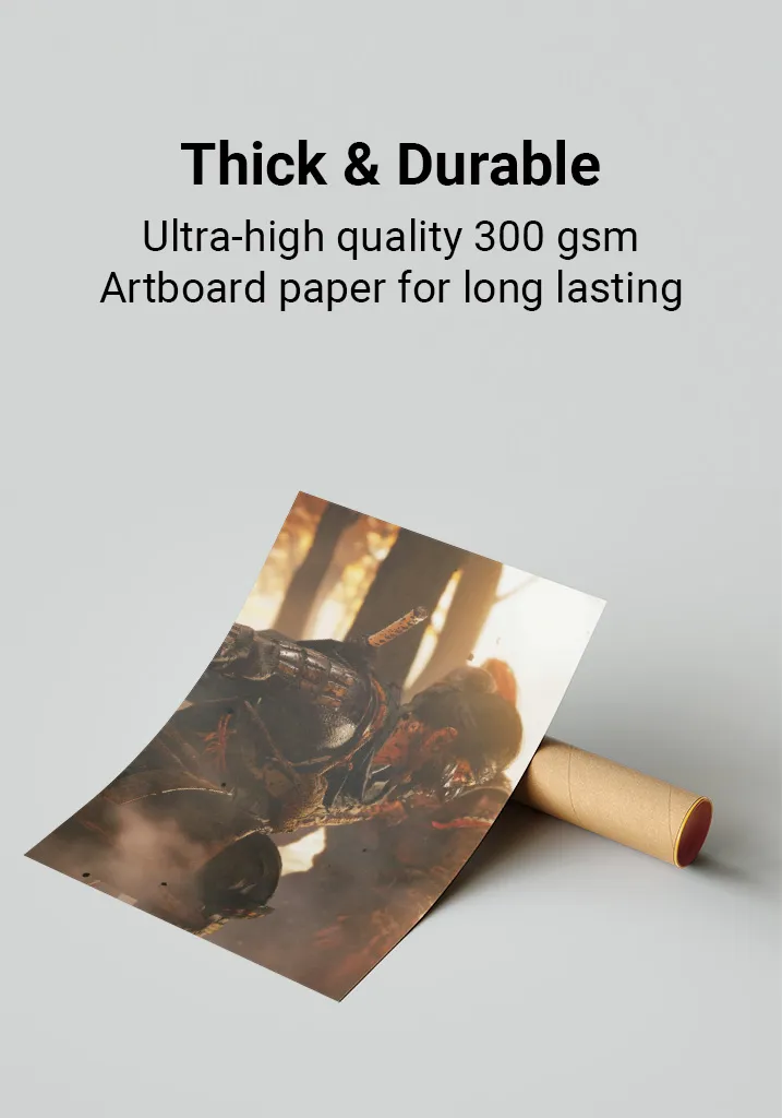 Beautiful Ghost of Tsushima artwork, though shipping was a bit slow. The 300 GSM paper quality is excellent and the print definition is crystal clear. Worth the extra waiting time.