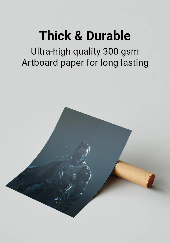 This Ghost of Tsushima poster features high-resolution artwork printed on 300gsm thick, glossy paper to ensure vibrant colors & long-lasting durability.