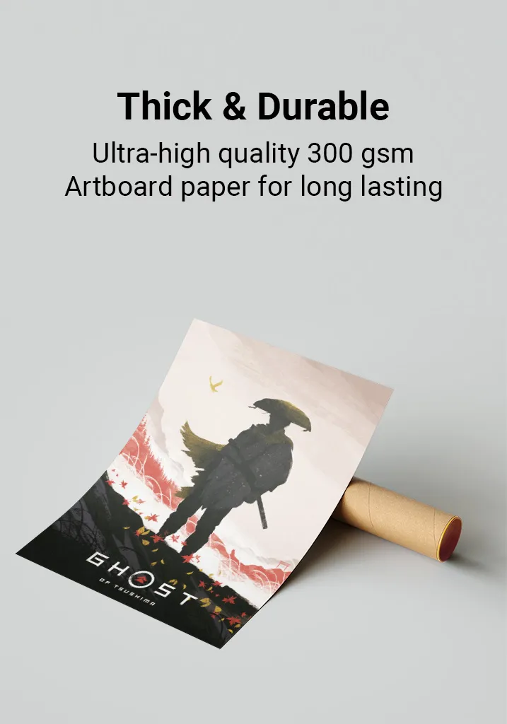 This Ghost of Tsushima poster features high-resolution artwork printed on 300gsm thick, glossy paper to ensure vibrant colors & long-lasting durability.