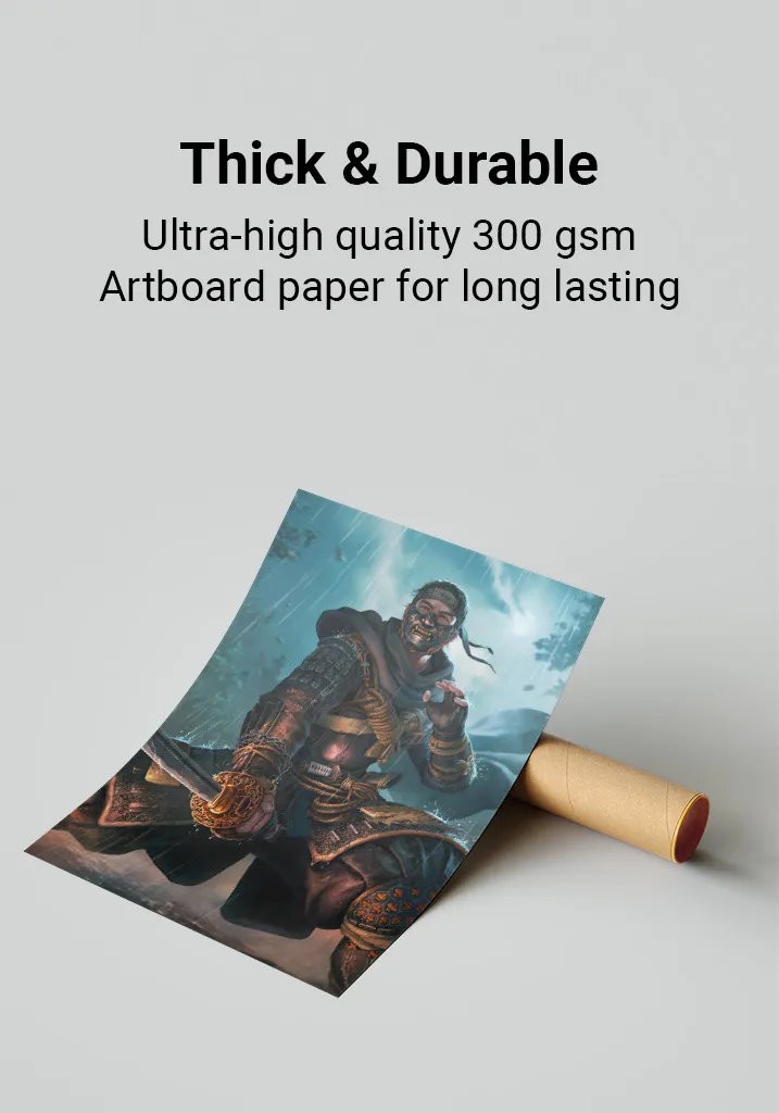 This poster exceeds all expectations! The 300 GSM paper feels incredibly substantial, and the glossy finish adds such depth to the artwork. The packaging was also top-notch, ensuring perfect delivery.
