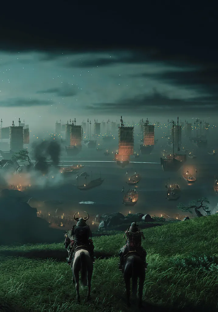 Epic Ghost of Tsushima poster showcasing the mighty samurai legion. Features dramatic battlefield scenes and warrior pride. Shop Ghost of Tsushima Samurai Legion Epic Art Poster & level up your space.