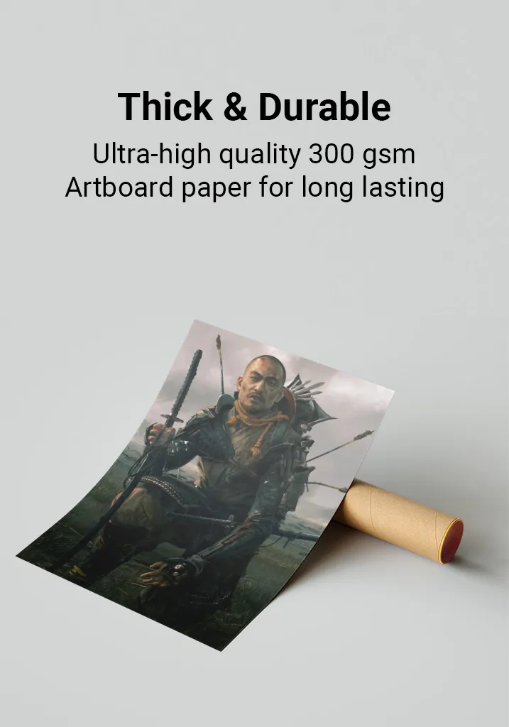 Premium Quality: Ghost of Tsushima posters are printed on ultra-thick 300gsm, glossy art-board paper for a premium feel and lasting durability. The perfect addition to any gaming room, bedroom, or office. Available in multiple sizes to fit your space.