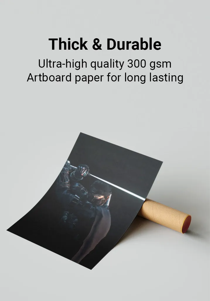What an amazing piece of gaming art! The 300 GSM paper feels incredibly luxurious, and the glossy finish makes the colors absolutely stunning. The packaging protected it perfectly during shipping.