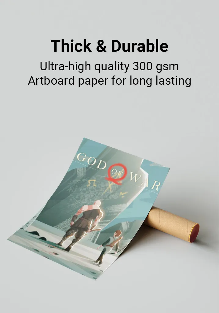 This God of War poster features high-resolution artwork printed on 300gsm thick, glossy paper to ensure vibrant colors & long-lasting durability.