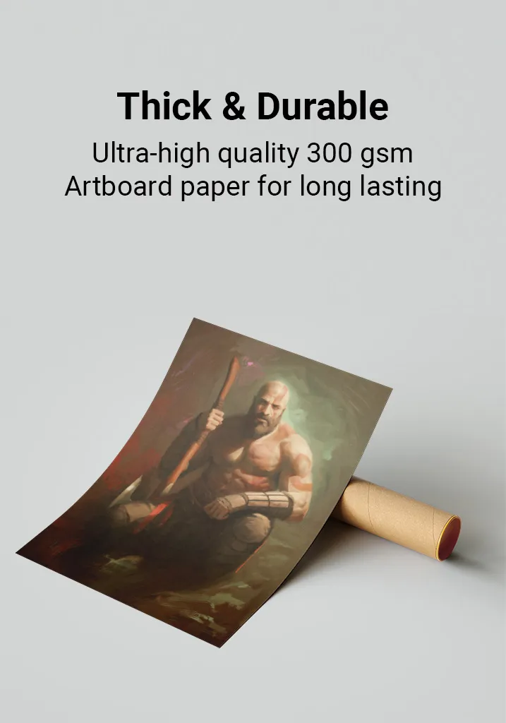 This God of War poster features high-resolution artwork printed on 300gsm thick, glossy paper to ensure vibrant colors & long-lasting durability.
