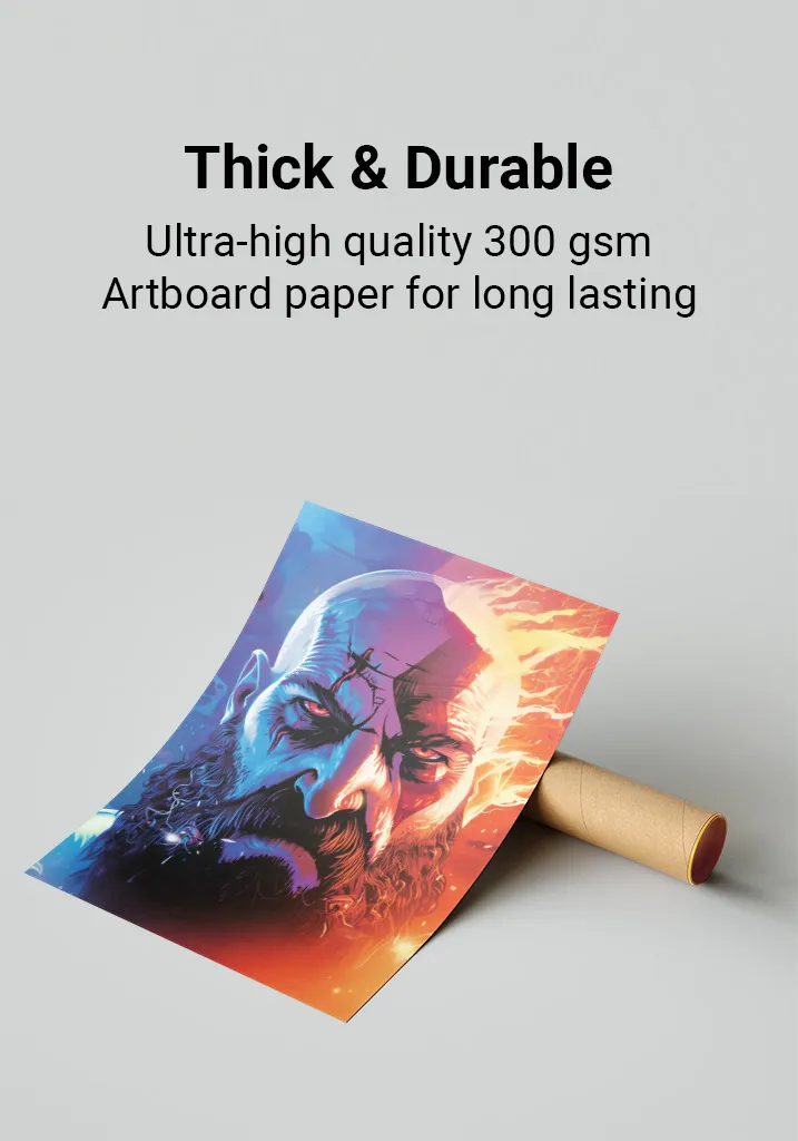 This God of War poster features high-resolution artwork printed on 300gsm thick, glossy paper to ensure vibrant colors & long-lasting durability.