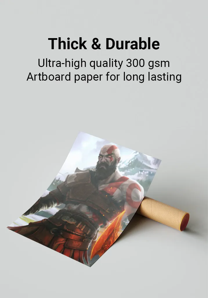 Premium Quality: God of War posters are printed on ultra-thick 300gsm, glossy art-board paper for a premium feel and lasting durability. The perfect addition to any gaming room, bedroom, or office. Available in multiple sizes to fit your space.