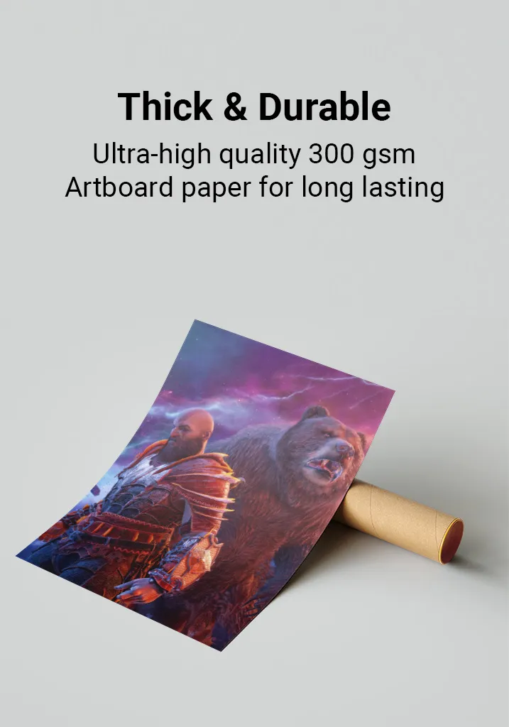 Premium Quality: God of War posters are printed on ultra-thick 300gsm, glossy art-board paper for a premium feel and lasting durability. The perfect addition to any gaming room, bedroom, or office. Available in multiple sizes to fit your space.