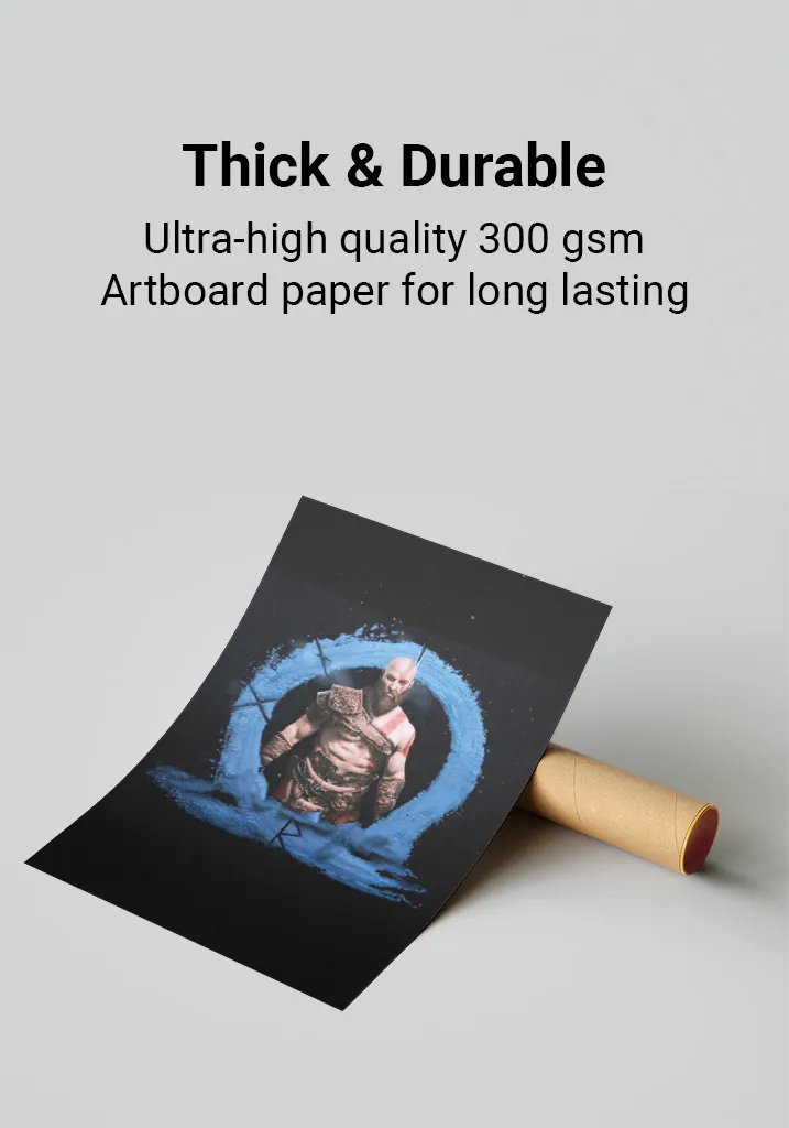 This God of War poster features high-resolution artwork printed on 300gsm thick, glossy paper to ensure vibrant colors & long-lasting durability.