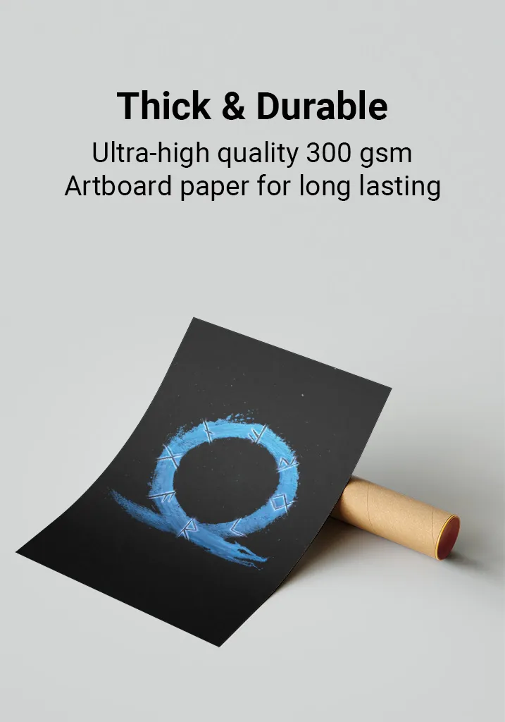 This God of War poster features high-resolution artwork printed on 300gsm thick, glossy paper to ensure vibrant colors & long-lasting durability.