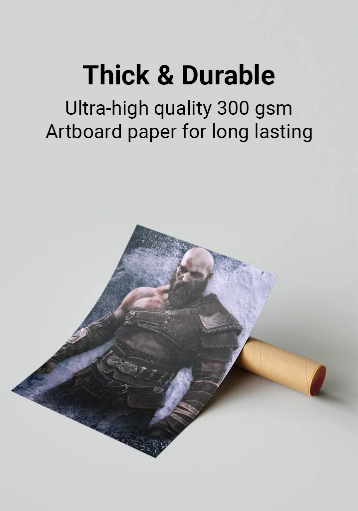 Premium Quality: God of War posters are printed on ultra-thick 300gsm, glossy art-board paper for a premium feel and lasting durability. The perfect addition to any gaming room, bedroom, or office. Available in multiple sizes to fit your space.